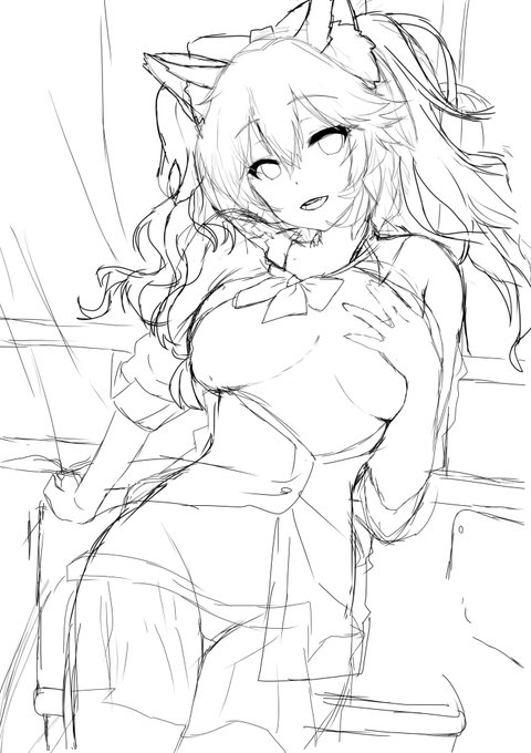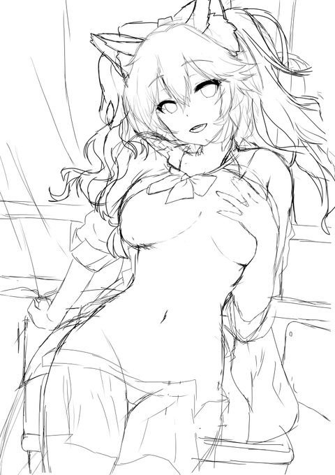 ラフ画完成したけど、お腹部分のシャツ開けてた方がいいか?閉めていた方がいいか?どっちがいいですかね?