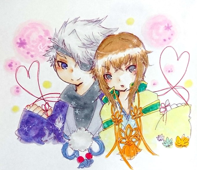 今日が恋人の日とのことてで、前に描いた絵だけど赤い糸で繋がってる我が家の子達🎀 どうかこれからも2人で幸せに過ごせますように(✿´ ꒳ ` )♡