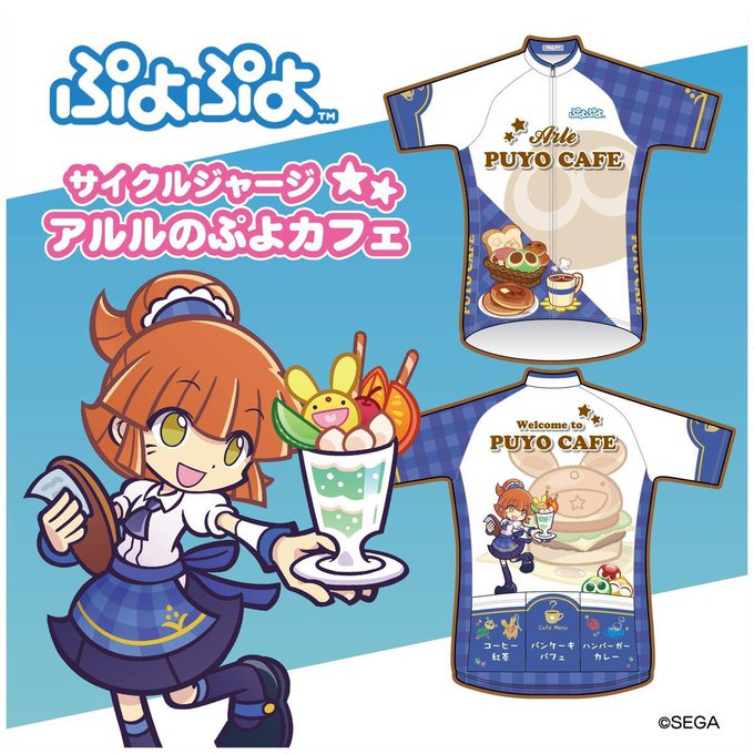 『아르르의 뿌요카페 반소매 져지(半袖ジャージ ぷよぷよ アルルのぷよカフェ)』 상품은 「아르르가 만약 카페 일을 시작한다면?」이란 테마로 만들어졌으며, 져지 뒷면엔 멋진 요리가 적혀있는 옷이다 뿌요. 가격은 세금 포함 14,850엔이다 뿌요.