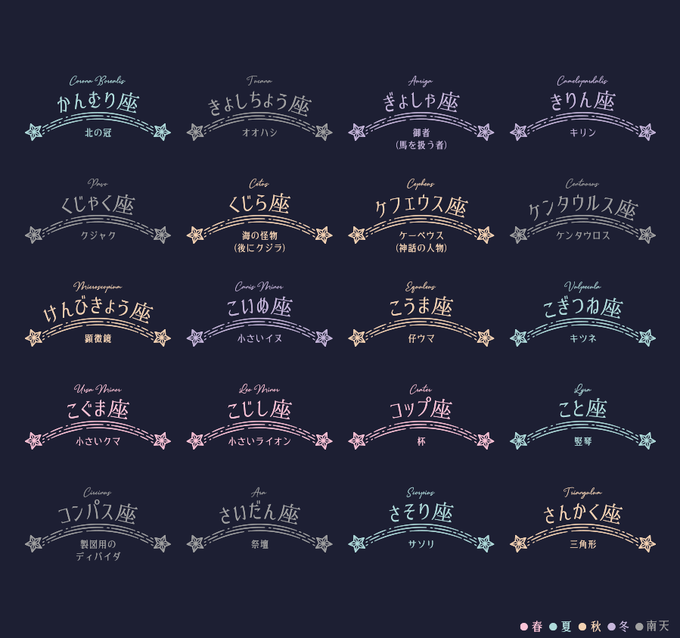 覚えたいシリーズのリクエストより「88星座」です!季節は見るサイトによって様々だったので一例ということで…
