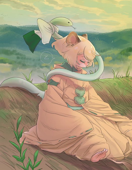 高いところでひざまるさんを待ってるうちに寝てしまったししのこちゃんとひやひやしてるへびまる
