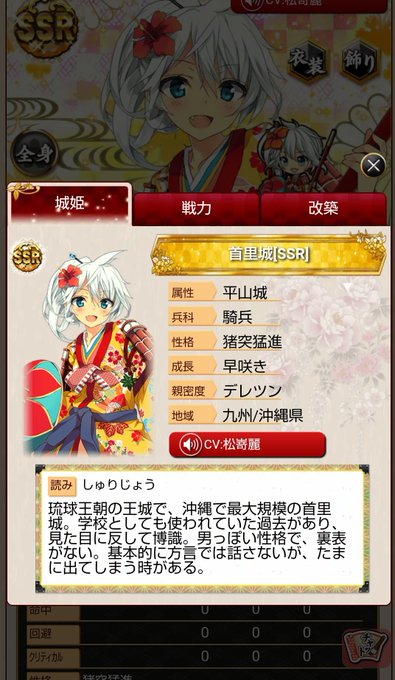 さすがに城姫のチャットも首里城の話題が多い。 運営から告知ないが TOPの立ち絵が首里城で固定されてるらしい。 あと、城姫首里城の設定も紹介しときます。