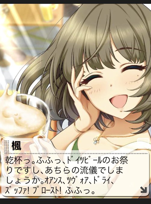 高垣楓とビールについて モバマスのエピソードでアイドルのお仕事を調整して、1週間ドイツのビールフェスティバルに参加するぐらいビールもイケる口です! コラボありがとうございます!!