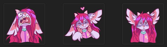 Some recent gifts for friends! @chomperbee’s chimereon, a blushy sticker of @PaintedDeerCT’s Cat, and a very hungry @AlienMaryMae sticker.