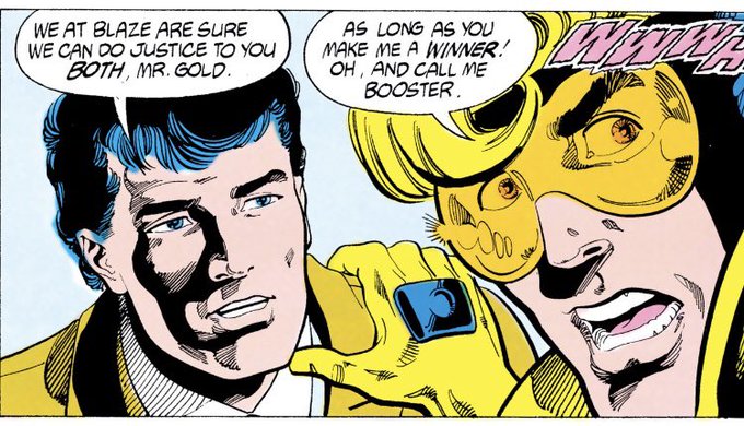 the most important thing for me vis a vis booster’s name is that, even before he legally changes his name, dude gets his superhero name because when asked his name, he panicked and answered ‘booster’ on instinct (BG #9)