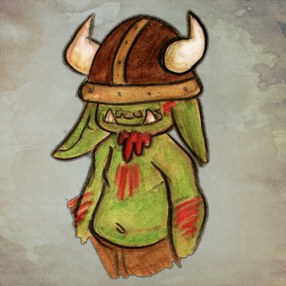 Mama the CG orc barbarian. My first campaign character! Charismatic, loving, loud, and clumsy, I retired her dice because she was a crit *machine*. Once one-shot an entire boss in one raging, charging, howling strike. Had a baby-