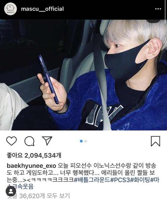 Sehun is also wearing enviromental friendly Mascu mask like Baekhyun ♥️