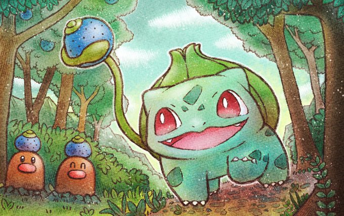 みどりの日なので、くさタイプのみんなでトトロごっこ! 木生やすやつ🌱 #みどりの日 #ポケモンイラスト