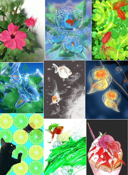 #今月描いた絵を晒そう #イラスト好きさんと繋がりたい 金魚ちゃん、ファンアート、たのしいらくがき、水彩