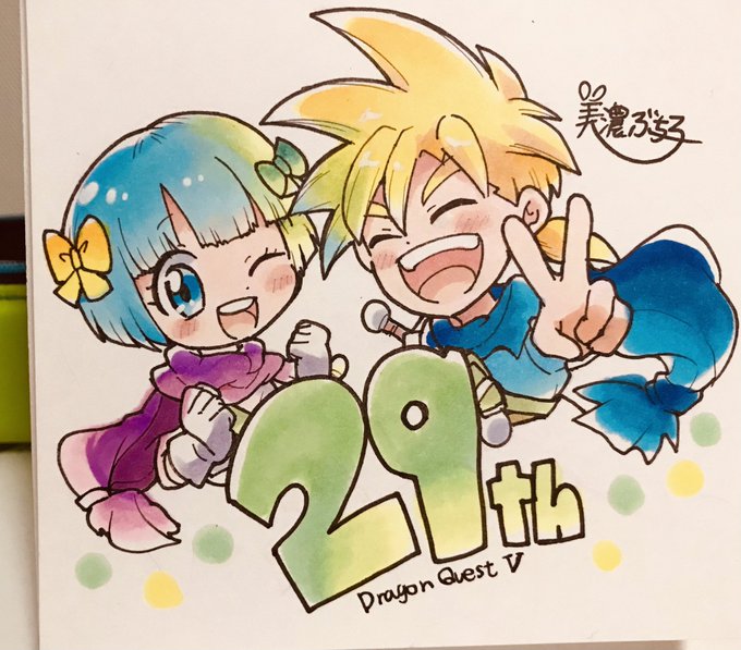 ※版権 ドラクエ5!!!お誕生日おめでとう!!大好きな双子ちゃんお絵描き🏰 #DQV29周年 #美濃ぶち子アナログ日記