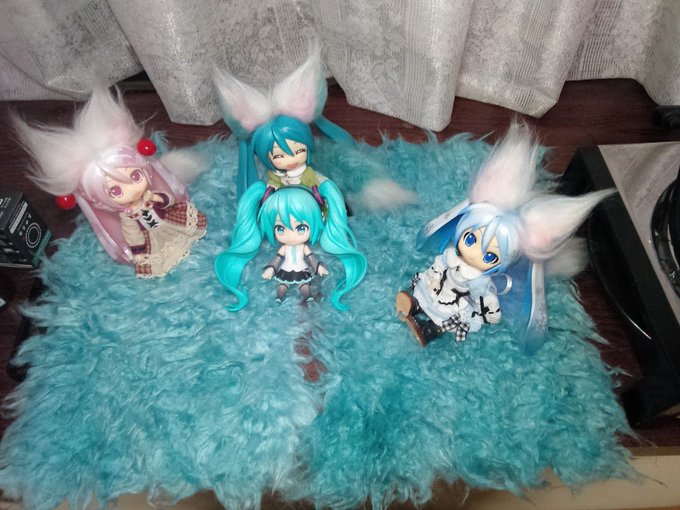 #深夜のねんどろ撮影60分一本勝負 4/2【こだわる】 既出 手触り良いの選んだら色合いが合わなくてミクさんの緑のために染色まで始めました🤣