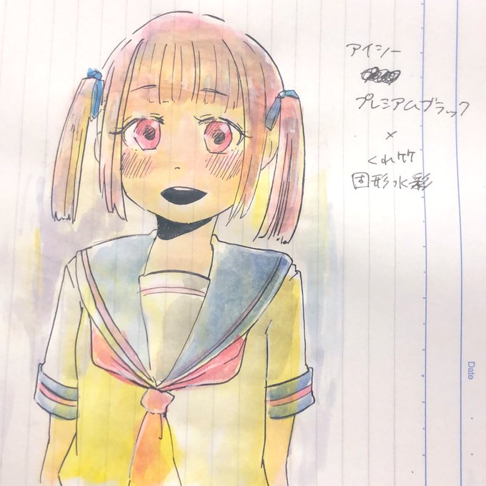 ノートに試し描きしたらいい感じだった気がして色塗りしたけどペラペラのノートでは重ね塗りは出来なかった…