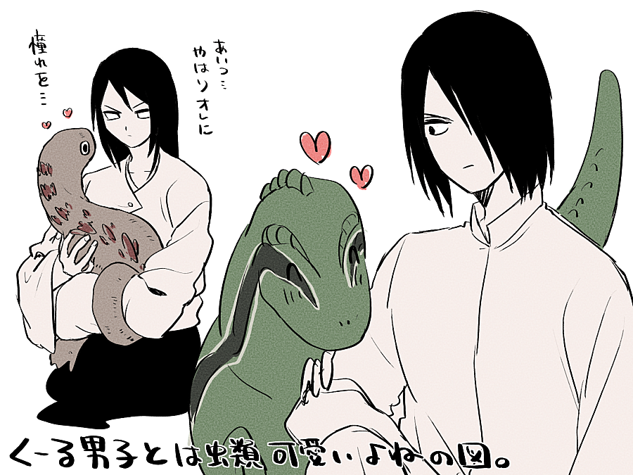 趣味でかまたくんとネジ描いてたらサスケも爬虫類と仲良くし始めた