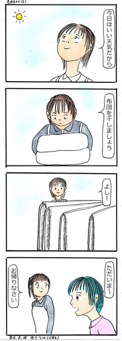 提灯オバケと人形のはなし その600 #4コマ漫画 #オリジナル #手描き #女の子 #お母さん #布団干し #地獄車 https://t.co/LaZrLx1rhS