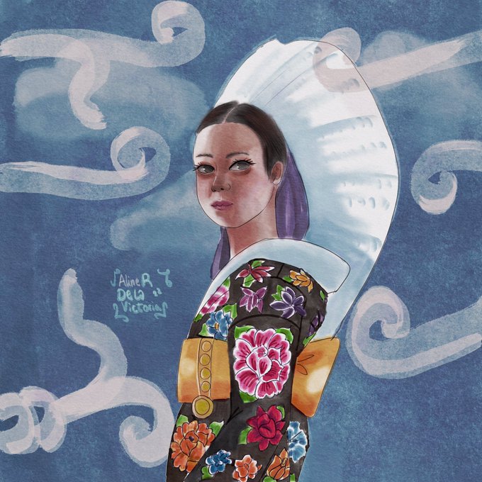 Im Aline I like to draw brown skinned, indigenous related mexican girls mixed with asian stuff, like kimonos, sometimes qipaos.