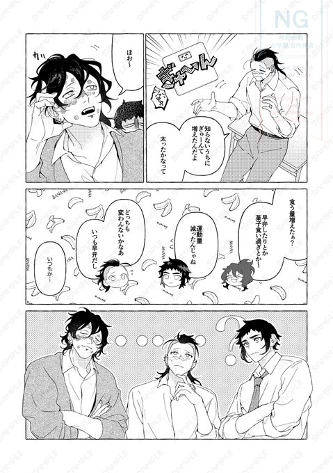 【12/15 日輪鬼譚42】新刊 「他愛無い日常を謳歌せよ」サンプル(1/2) 玄くん🍉・ぎゅう太郎⛏️・獪ガク🍑が仲良しの謎世界線でまったり過ごす話 2023-2024にかけてXに掲載した短編の再録+描き下ろし14P ツリーに部数アンケートをつなげております よろしければご協力ください〜!