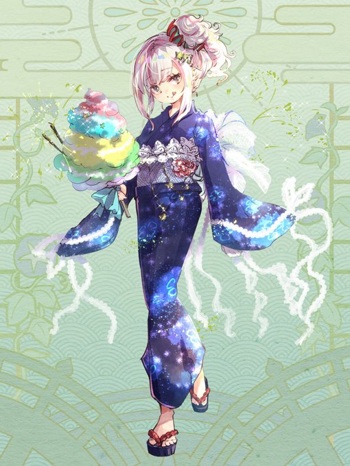 くらげモチーフの浴衣と、ふわっふわわたがし。