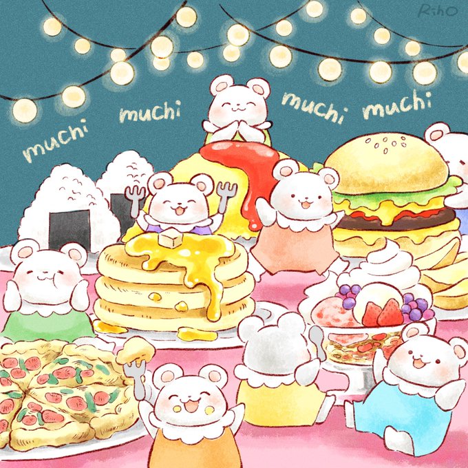 むちむちねずみ🐭🐭🐭🐭🐭 高カロリーなものはおいしい! だからむちむち🐭🐭🐭 むちむち🐭🐭🍕🍔🥞🍨🍙 #イラスト #オリジナルキャラクター
