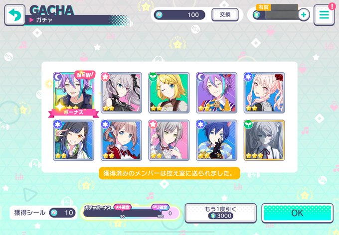 ボーナス含め100連で揃ったの神ムーブ過ぎた、、、、、、、、