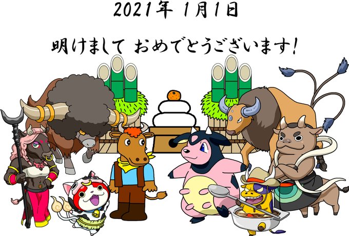 今年の年賀状 #アンパンマン #ポケモン #妖怪ウォッチ #コラボ #年賀状イラスト #丑年
