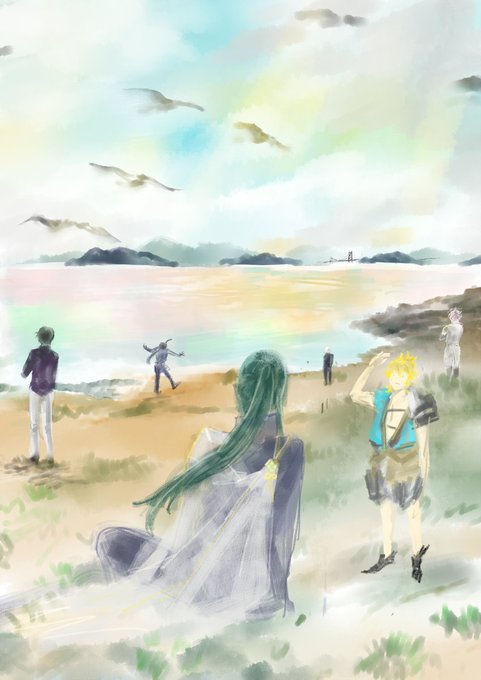 @waki34_drow_60m みんなでレッツ浦島虎徹~~!!!適当ですがカラーで塗ったら、浦島の髪色と服はやっぱり浦島じゃないとダメやなぁとニコニコしました。小並感。 #脇差組版深夜の真剣60分一本勝負