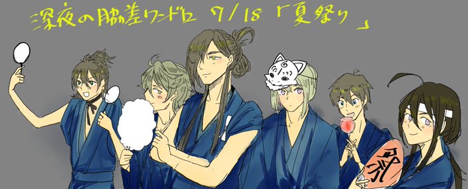 @waki34_drow_60m それぞれ抱いてる猫が兼さん、虎徹、石切丸、三日月、一期、後藤くんにしたかった・・・1.5でした;; #脇差組版深夜の真剣60分一本勝負