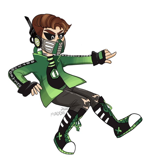 Another commission I’ve completed! This one was for @AlpineCatster of their really cool character Helix! Had a lot of fun with this design, I love me some Ai characters! Also I love the color combo of green and black, so its always a blast working with those colors!