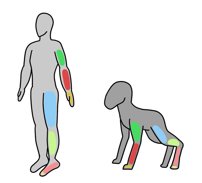 人間と4足歩行生物の各部位にあたるのって3枚目4枚目が正しいんだとしたら