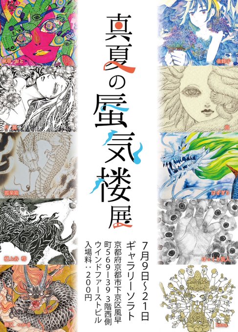 おはようございます。本日も11時からギャラリーソラトさんで #真夏の蜃気楼展 開場します。京都は曇り空で暑さも和らいでいます。