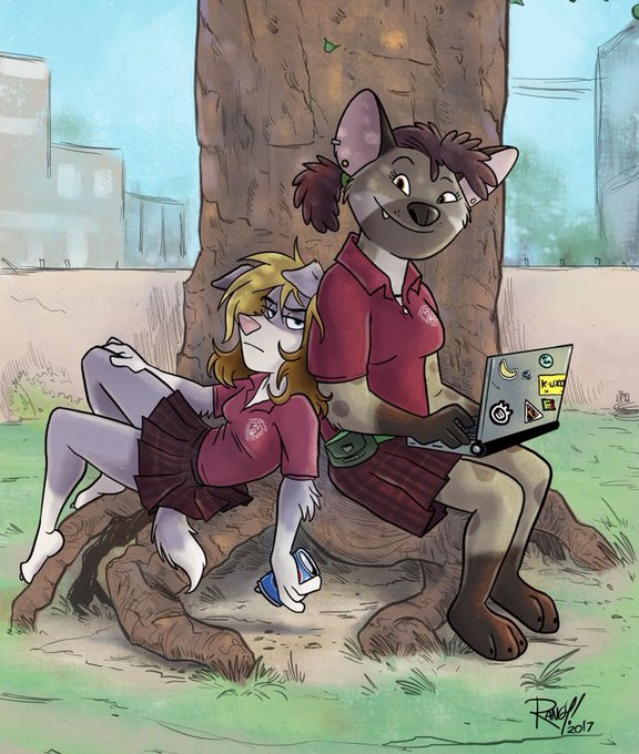 @MakarDraws Uuuf ! I don’t remember if I have a ref sheet of my hyena gorl but here’s an old pic of Khali and Ro!