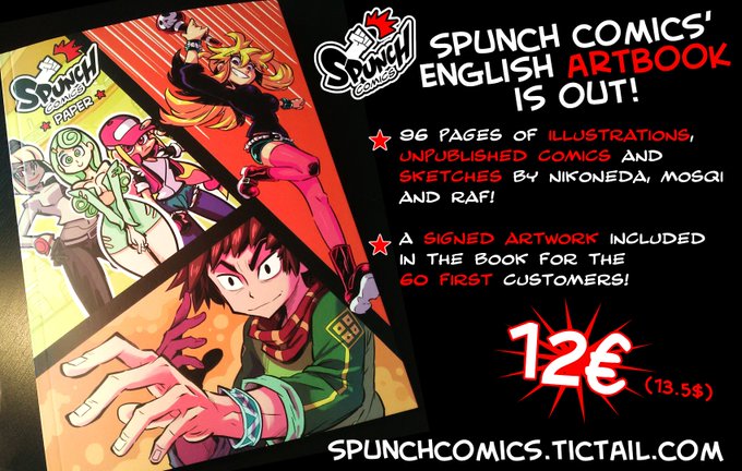 L'artbook Spunch est dispo ! 100 pages de dessins pour 12€ et une dédicace pour les 60 premiers clients o(≧▽≦)o !! https://t.co/dgXczPffIV