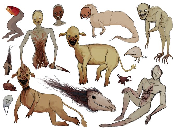 my friend drew this of my cryptid in an abandoned building- and it’s inspiring me to revist the entire cast and make more. what do you think?