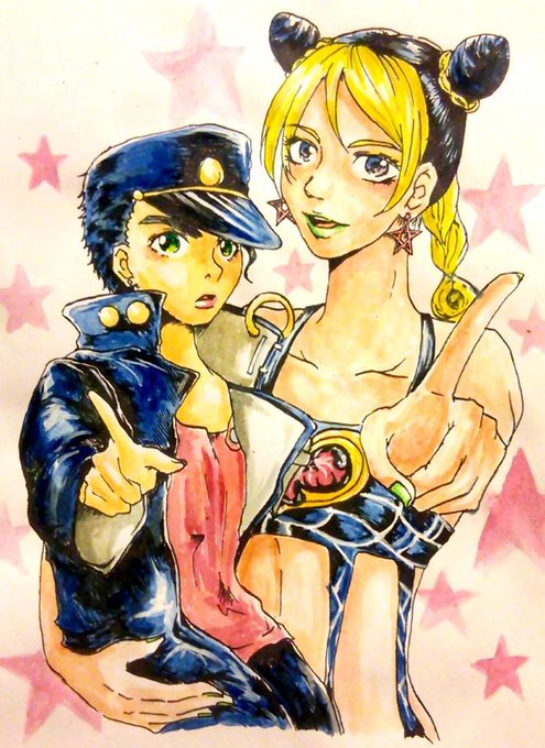 僭越ながらむつこさん(@mutsuoror)の絵をリメイクさせていただきましたー!徐倫とショタ郎(*^O^*) #フォロワーさんの絵を自分の絵柄でリメイクする