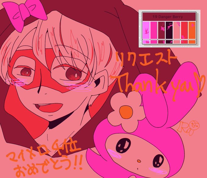 m子しゃん(@jLK9MZ4NUGcEE4E )からのリク!19番をだばさんとマイメロで描きました〜〜〜〜マイメロ4位おめでと〜〜〜〜👏😂 ※だばさんにマイメロフード被せてます!注意!! https://t.co/tqw3MLbCbi