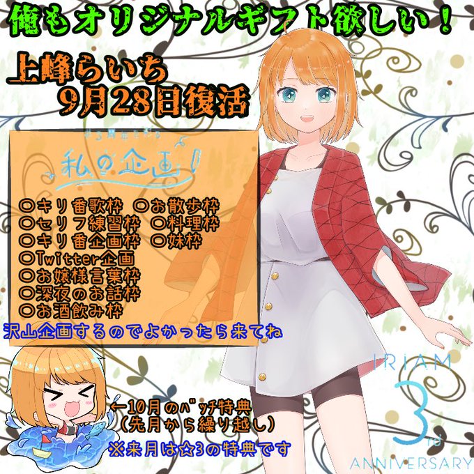 ちなみに企画は # の方で配信時間が決まる企画をしていますのでよかったらぜひ拡散してくださいw