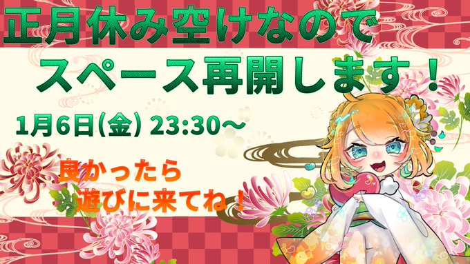 1時間後以内にスペース始めるよ!