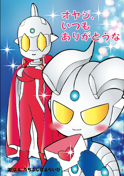 #ゾフィー遂に勝利の兆し記念 ウルトラマンメビウス サコミズさんとゾフィさん (ゾフィさん描いたのは相方) (白黒用に色つけたのでヘンですみません) #ゾフィ #ニコ生