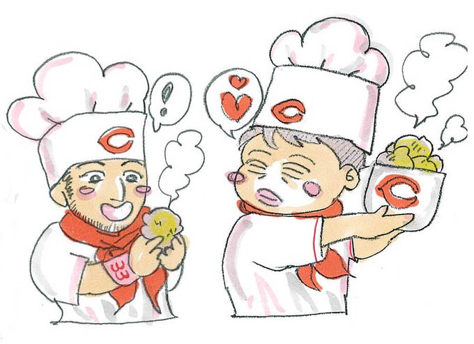 公式「カープ飯」の、 坊やのスタイルを着てもらいましたー。 #フライドチキンの日