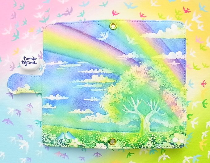 イラスト虹の行方のスマホケース。明るいブルーと虹が鮮やかに出てます。Creemaに出してますよ(*^_^*) #Creema新作 #スマホケース #ハンドメイド #雑貨 https://t.co/7SvEqhjaF0