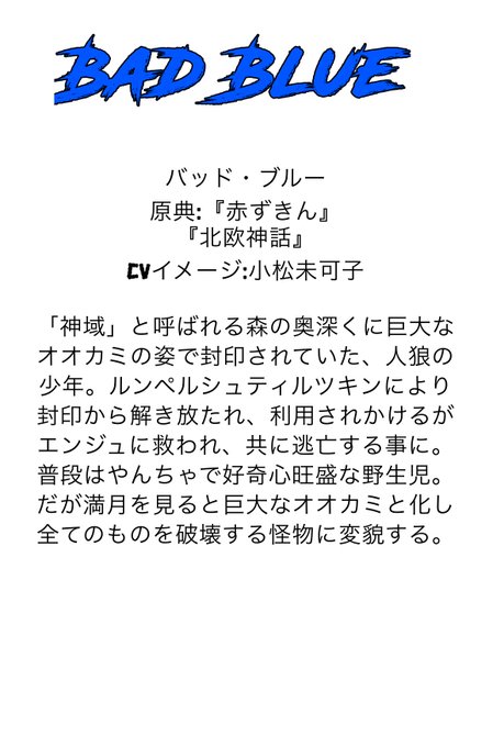 神域と呼ばれる森に封印されていた、人狼の少年。普段は好奇心旺盛でやんちゃな野生児だが、満月を見ると凶暴な巨狼に変身してしまう。