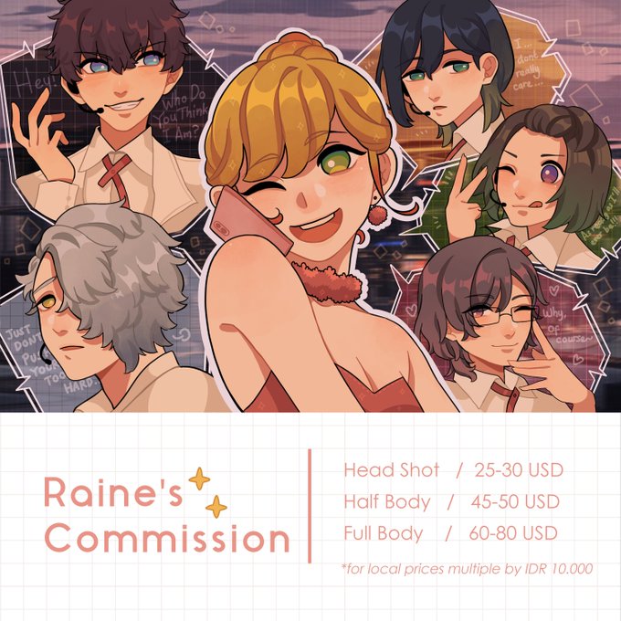 heya, im opening some commission slots to help a friend. pls expand the pictures below for pricelist and information. if you are interested, please hit my dm to claim a slot!