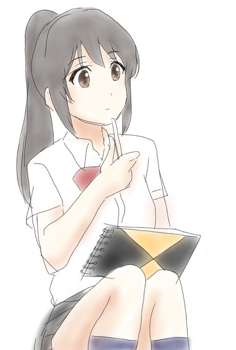 スケッチブックを抱えている三葉を描きました。何故スケッチブックを抱えているかは、litalitaさんのSSをご覧下さい! #君の名は版深夜の真剣お絵描き60分一本勝負 #君の名は #宮水三葉