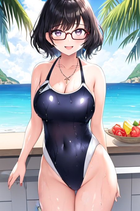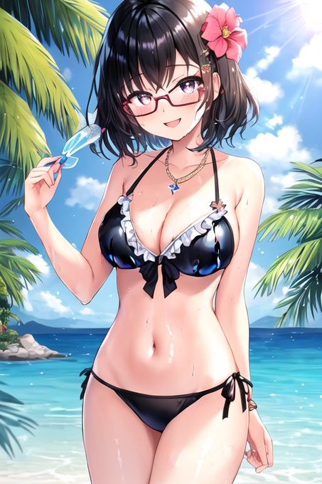 南国で満喫する眼鏡っ娘JK #AIイラスト #AIArt #ACertainThing