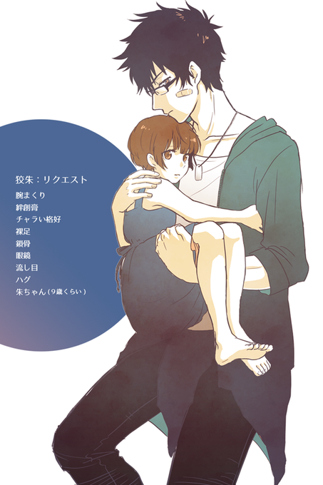 笹倉さん(@sasakura34)との線画交換にて塗らせて頂きました!リクエストは「泣いている子供をあやす狡朱」です。ありがとうございました(´`*)