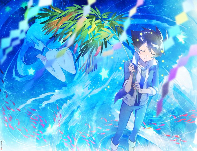 夜空に願う日。 | 蛇野らい #pixiv https://t.co/q15bADV5aC 間に合った。。七夕2017