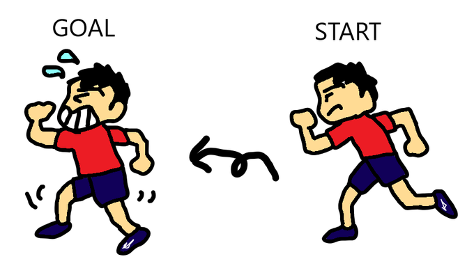 走っていると、向こうから走ってくるランナーがいました。