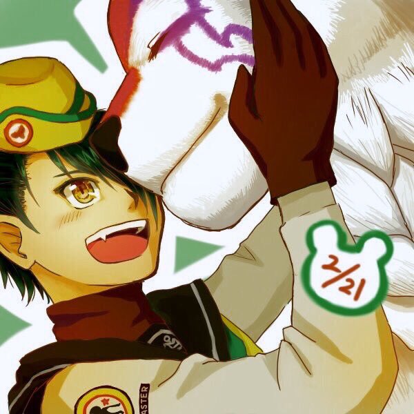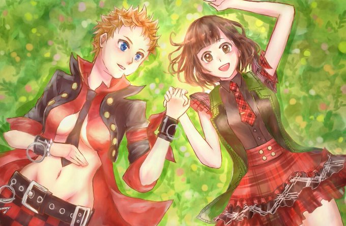 誕生日コスチューム4枚(リューシャ、アカネとアスマ、バン、レミー) バンくんの色塗りはアプリに頼りました0(:3 )~ ('、3_ヽ)_