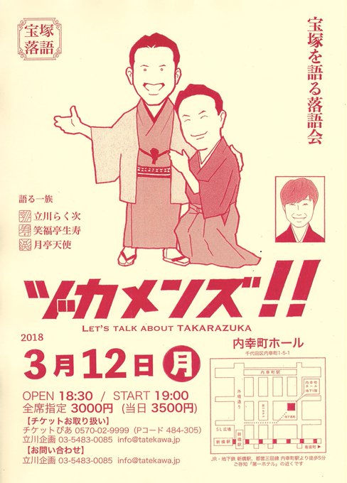 本日の内幸町ホール、宝塚を語る落語会「ヅカメンズ‼︎」お座席券完売いたしました。ありがとうございます。