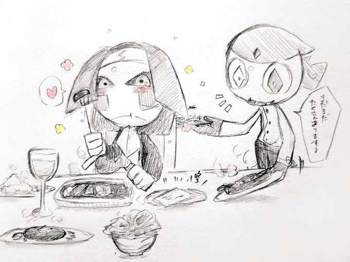 🐜くんいっぱいお食べ… 🎋さんはそれ振り回すんですか?! 🍬ちゃんはとにかくデザが好きです(好き) 👻さんはどんな方かわからなかったけど共闘して欲しかったんです… #窓の子供達