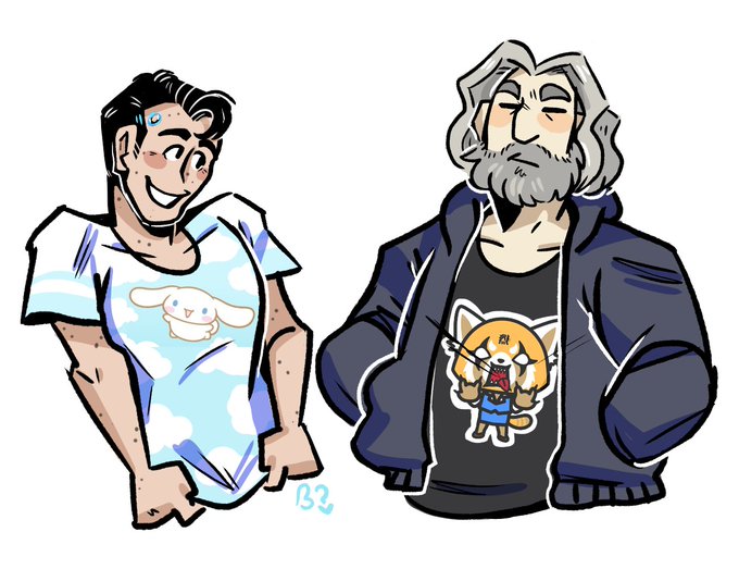me and my friend Alvaro joked that Hank would 100% own and wear an aggretsuko shirt so why not have Connor match #hankcon